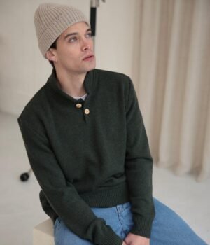 Cette maille ne pique pas et ne perd pas ses poils car nous avons sélectionné un fil fin, et que nous l’avons associé un fil coton pour resserrer le tricotage.