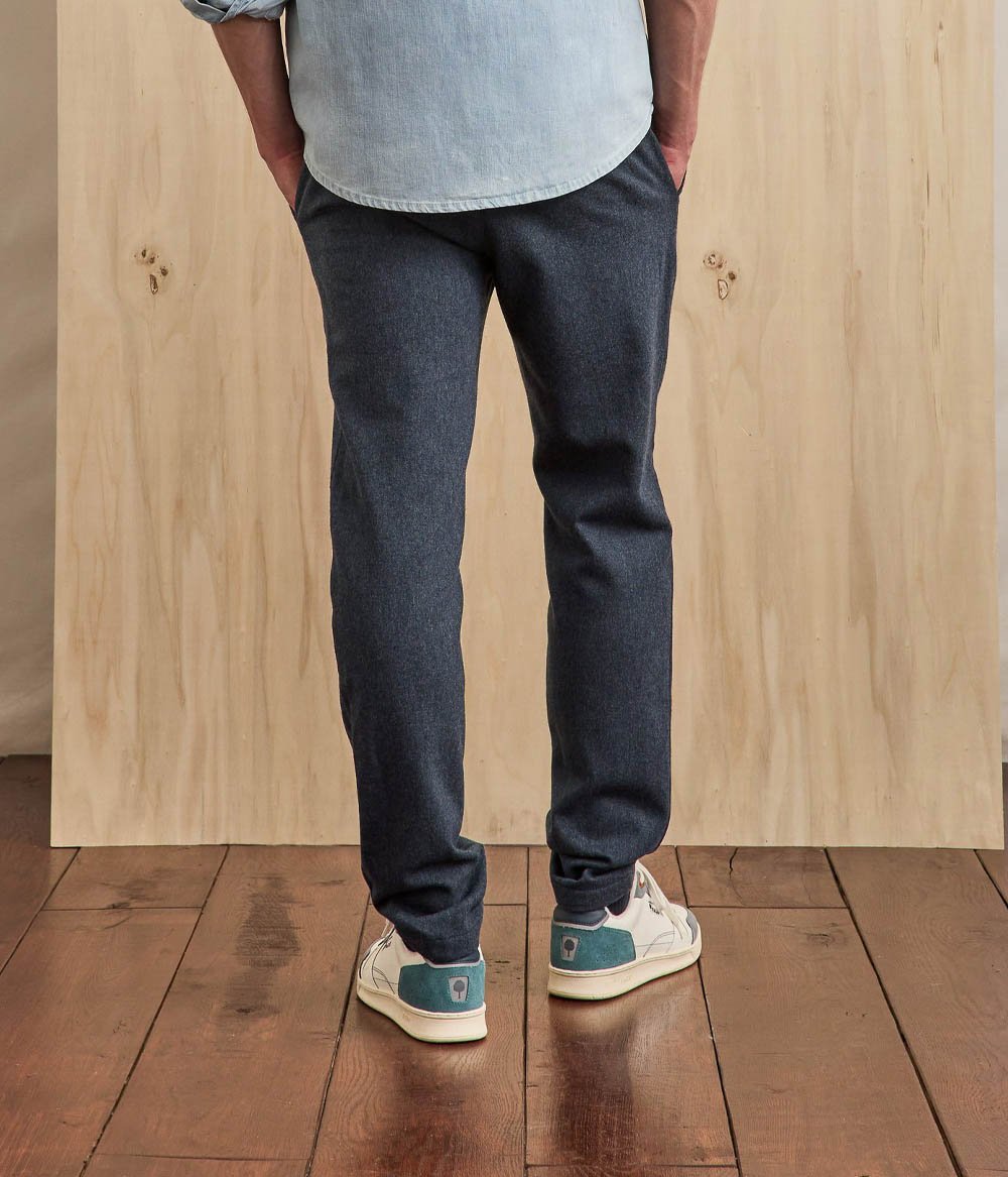 Le pantalon DREUILLE marine grisé combine aisance et tenue. Un pantalon marine homme inspiré du sportswear, pensé pour offrir confort et élégance dans la même pièce.