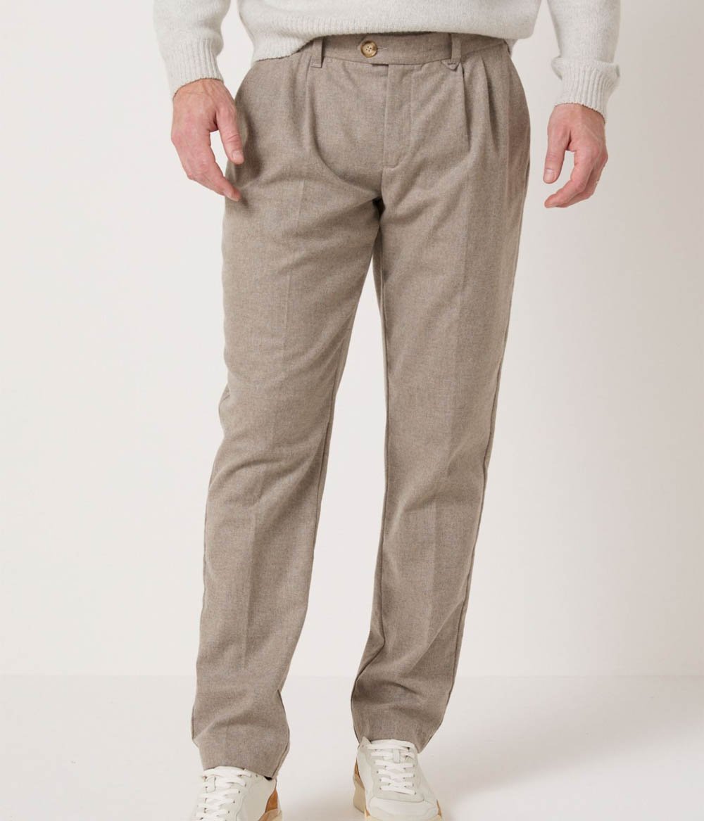 Le pantalon Palerme Blé est confectionné en flanelle de coton, un tissu doux et qui ne gratte pas. Une coupe carrot parfaite (même si la perfection n’existe pas) prouvée et éprouvée depuis 2 saisons. Légèrement élargi aux cuisses et ajusté en bas de jambe, sa coupe a l’avantage de mettre en valeur tous les types de silhouettes. Il peut facilement s’associer à une chemise formelle et une veste pour un look costume plus décontracté.